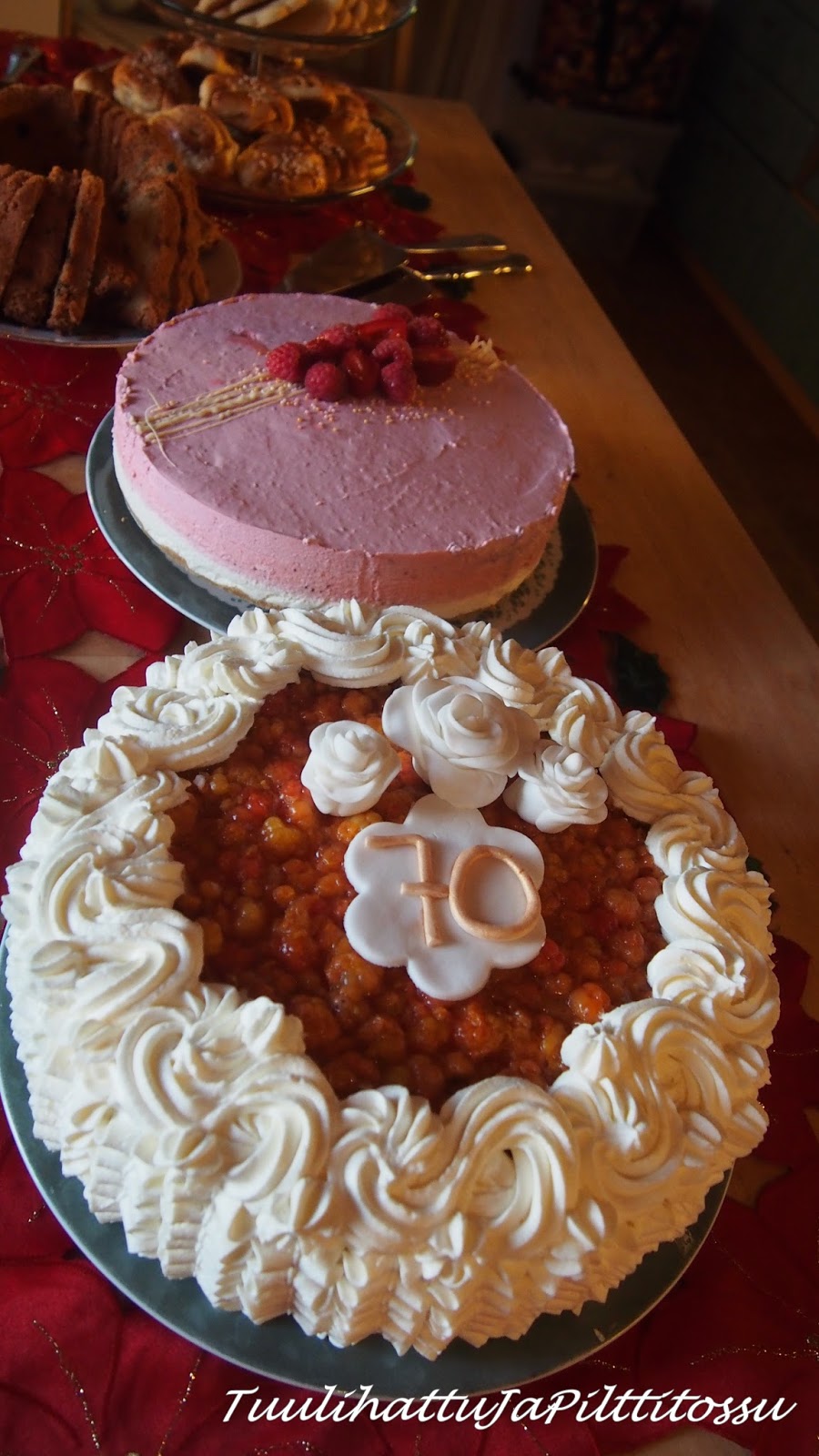 Viimeistele koristelu kauniilla pursotuksilla. Itse tykkään käyttää kerma+tuorejuusto tai kerma+rahkaseosta. Näillä yhdistelmillä saa jämäkkää, helposti pursotettavaa ja muotonsa pitävää massaa.